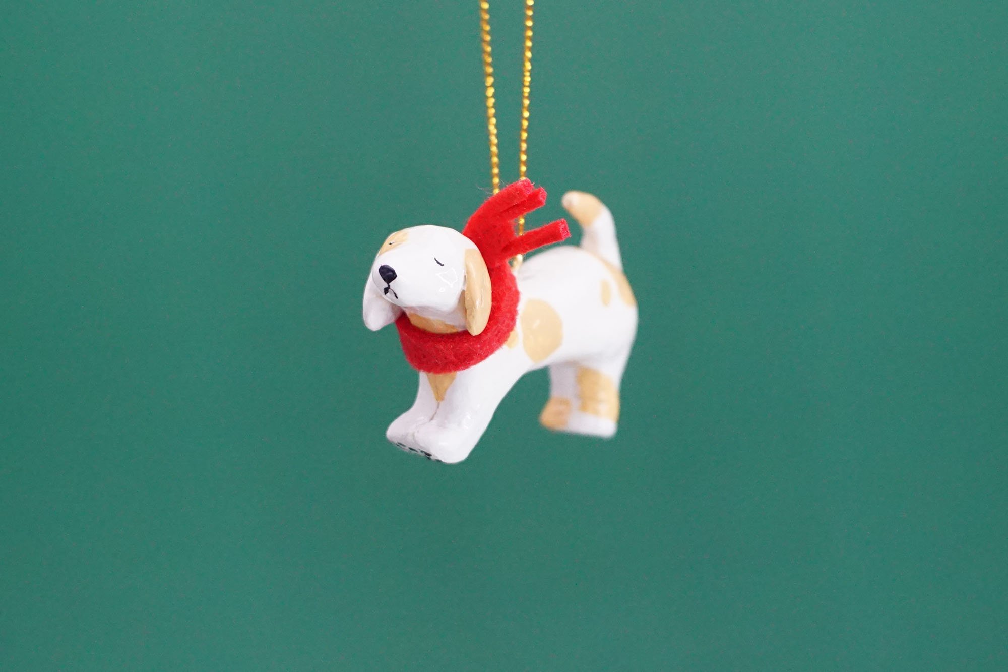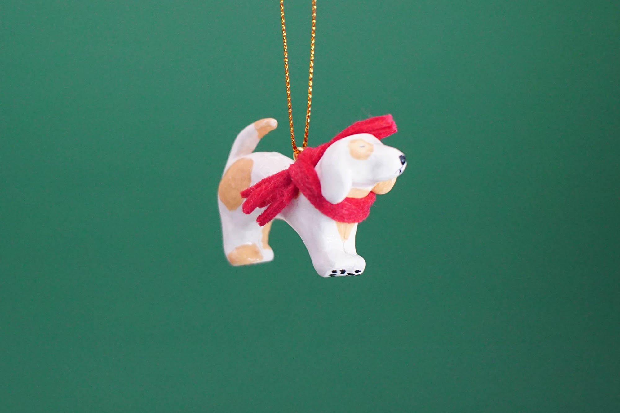 This particular dog is inspired by one of the feistiest dogs around, the Dachsund. We spend time and care ensuring each piece is crafted to the highest quality and with lots of character and no 2 ornaments are the same as each one is individually made. He features beige fur with caramel spots.